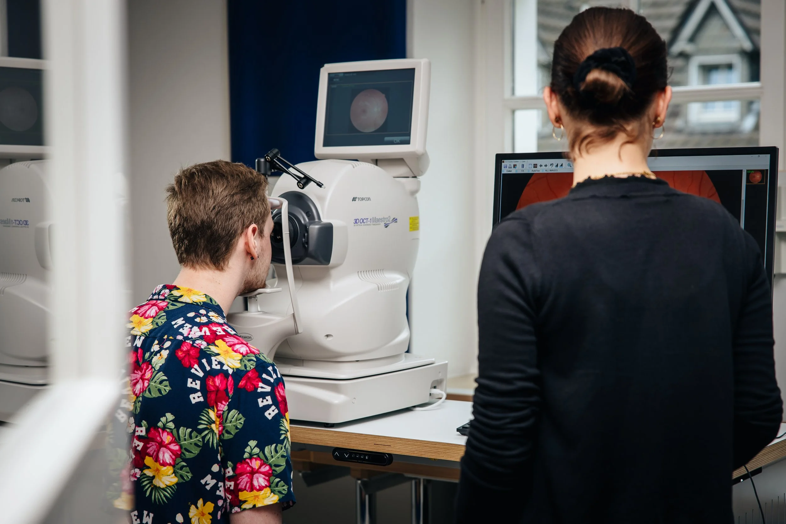 Funduskameras, mehreren Haag-Streit-Spaltlampen, Perimeter, FDT-Matrix von Zeiss, 3D-Brillenglas-Zentriersysteme, Pentacam, Skiaskope, Ophthalmoskope, Tonometer, Multifunktionsgeräte wie das Visionix VX120, iProfiler, Dämmerungssehtestgerät, Anomaloskope (Test Farbsehen)